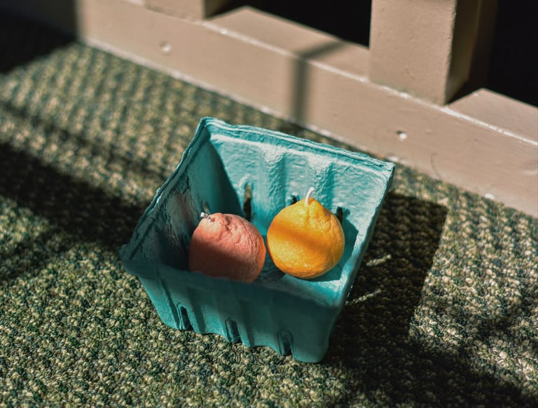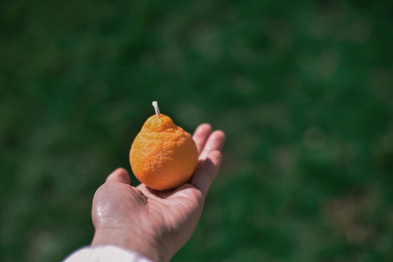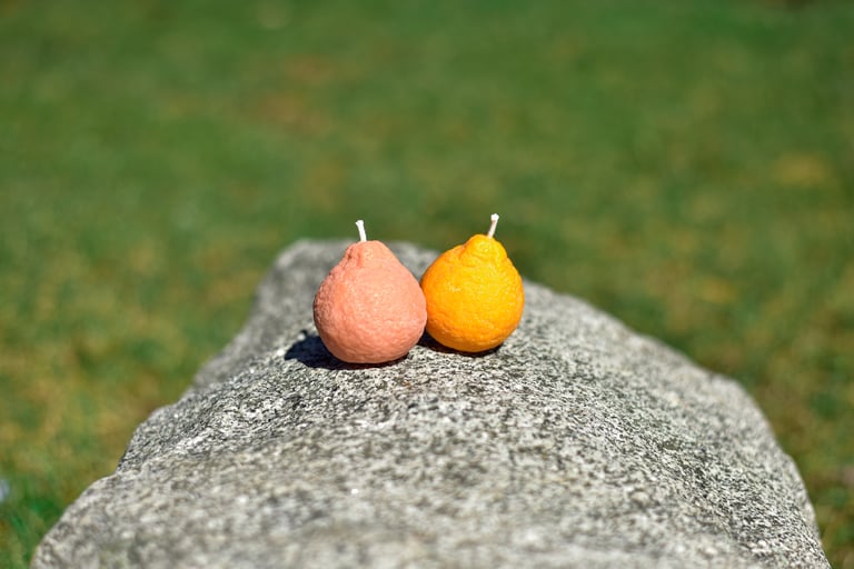 Citrus shaped candles in 100% soy wax with a sweet sangria scent.